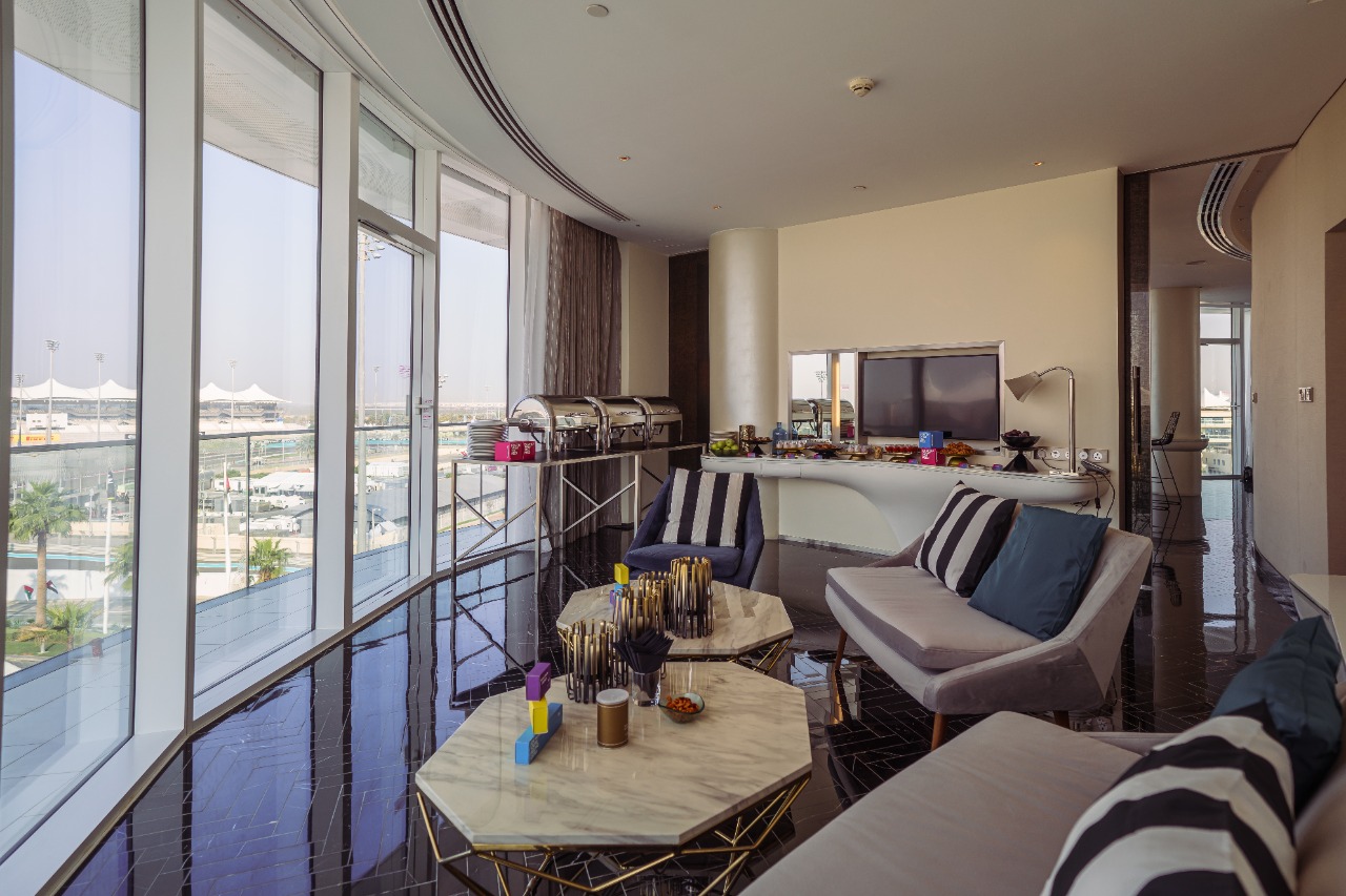 The suite’s wraparound terrace delivers an exceptional vantage point of key corners — from the marina at Turn 16, through the braking zone into Turn 17, and under the hotel towards Turns 20 and 21 leading onto the main straight. It’s one of the most sought-after perspectives to witness the season finale unfold.